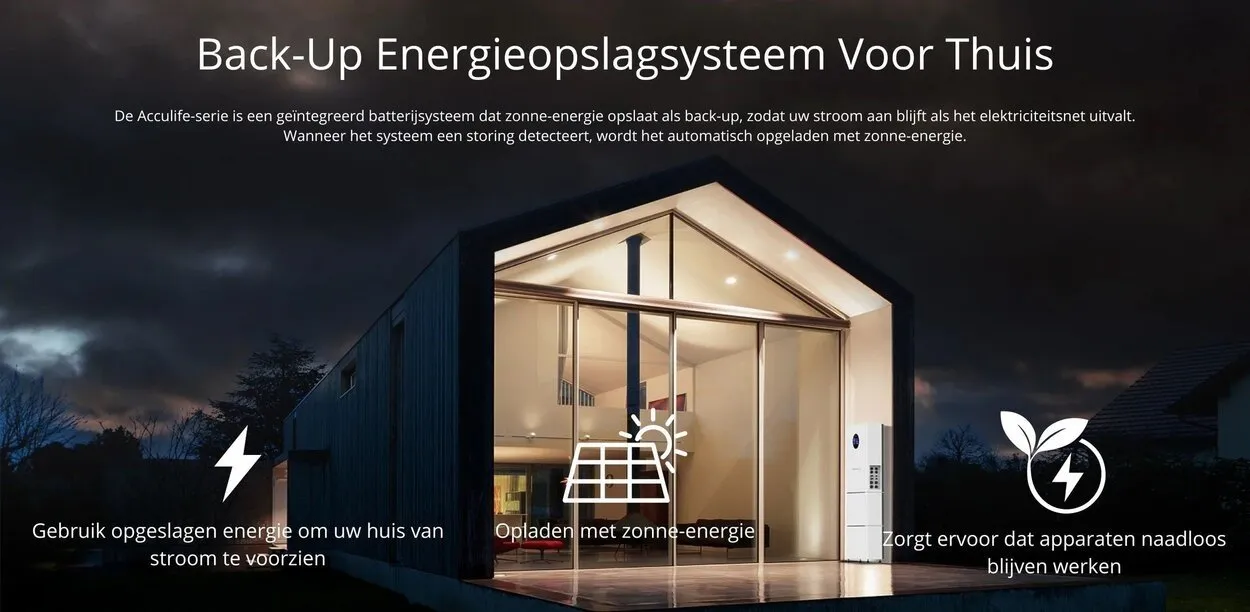 Bij Acculife geloven we dat iedereen controle mag hebben over z’n eigen energie. Daarom helpen we je om onafhankelijker te worden van het net, op een manier die bij jou past.